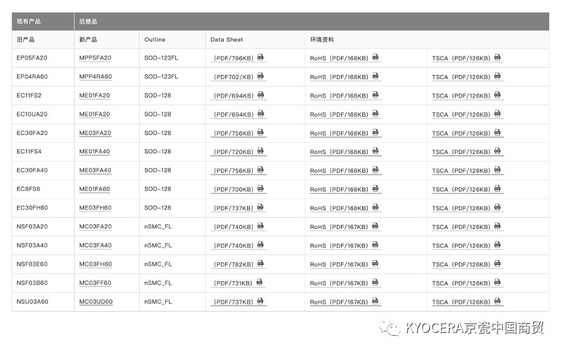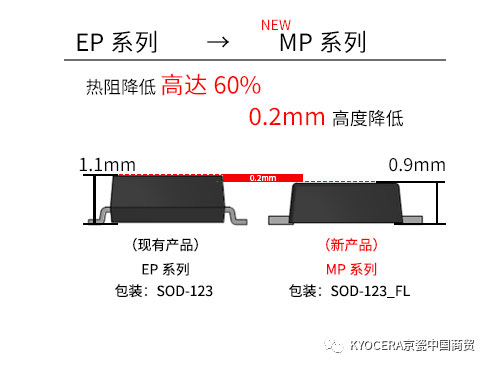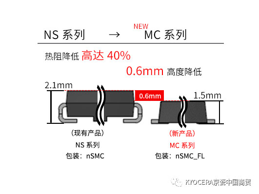 現(xiàn)在,京瓷更新了現(xiàn)有分立式半導(dǎo)體SMD封裝產(chǎn)品的EP/EC/NS系列,對應(yīng)的新系列名為MP/ME/MC系列。